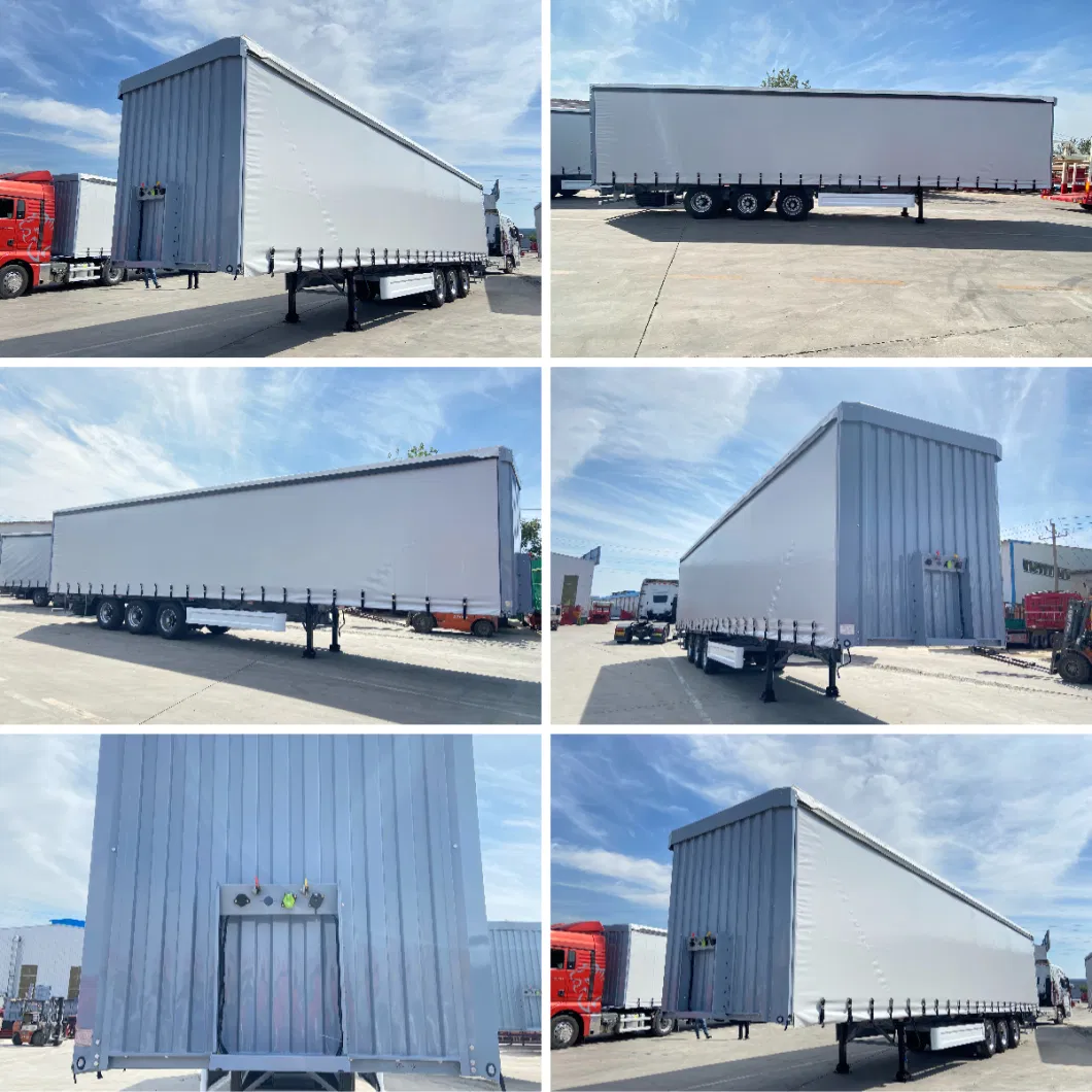 The curtain-side trailer has a curtain or curtain that can be pulled open on the side, which can load and unload goods on both sides at the same time, improving loading and unloading efficiency. The sliding top plate can be opened for loading, and heavy objects such as steel coils can be hoisted into the curtain-side trailer by a crane and then secured. The design of the curtain-side semi-trailer usually takes into account the safety and protection of the goods. The curtain material is usually made of high-strength, wear-resistant materials to ensure the safety and integrity of the goods during transportation.